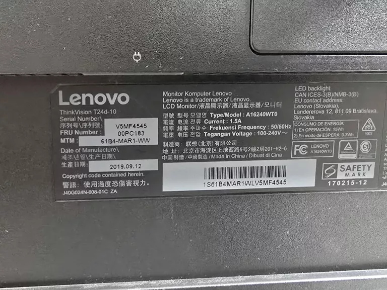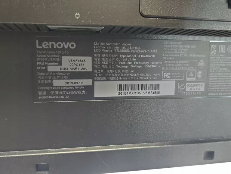 Monitor LED Lenovo ThinkVision T24d-10 24 " 1920 x 1200 px IPS / PLS