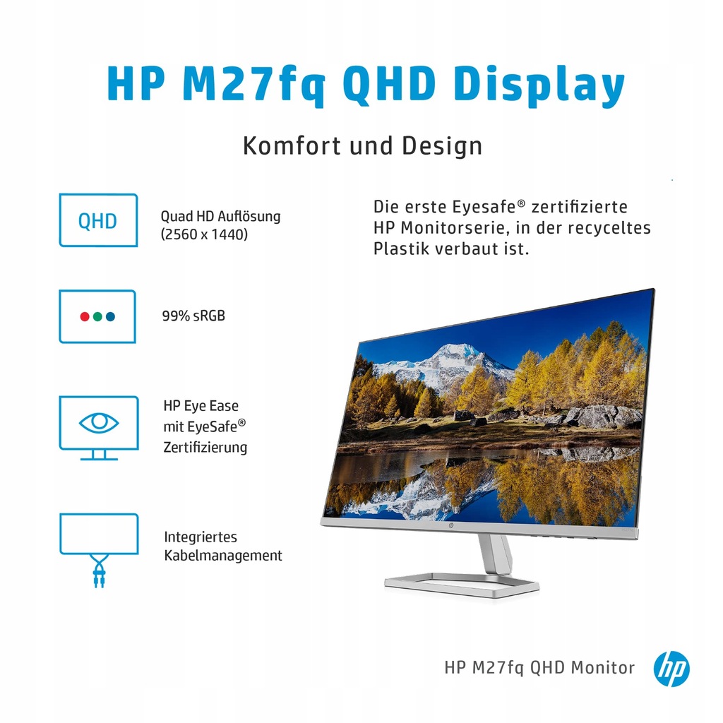 Krystalicznie czysty monitor QHD z 99% spektrum kolorów sRGB dla lepszej reprodukcji kolorów, w tym filtr światła niebieskiego HP Eye Ease dla wygodniejszego oglądania bez uszczerbku dla dokładności kolorów