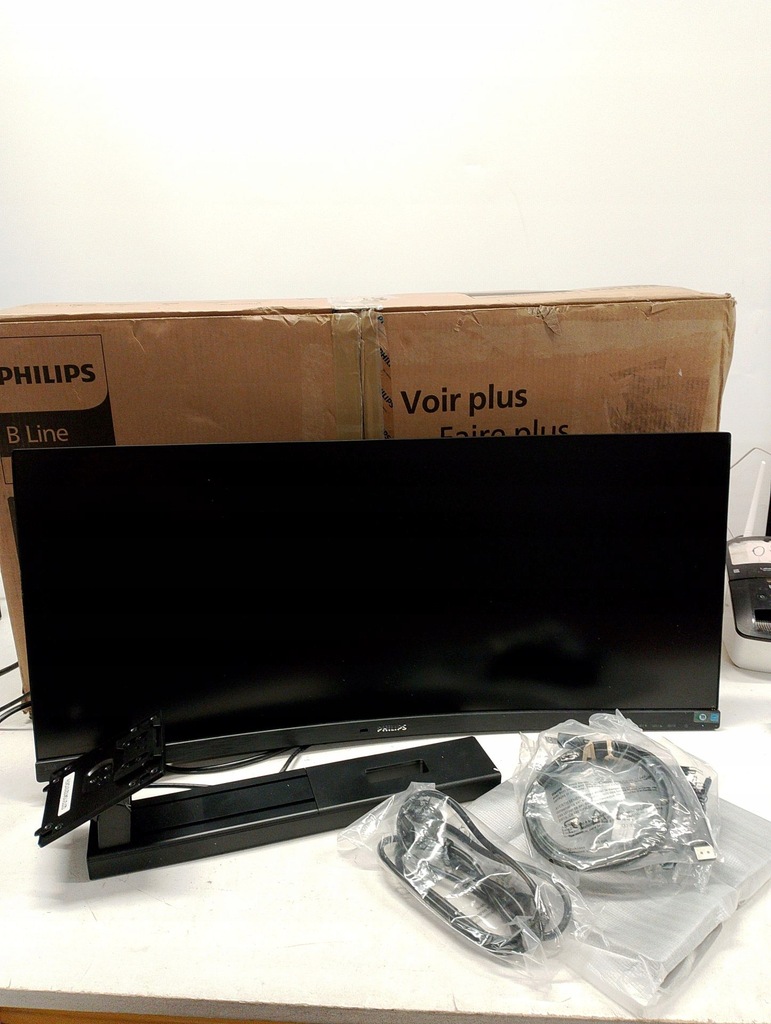 Wysokiej jakości panel VA, krzywizna 1500 mm, matowy wyświetlacz z czasem reakcji 4 ms, regulacja wysokości 180 mm, 2 głośniki 5 W, wyjście słuchawkowe, VESA 100x100, zdejmowana podstawka, format obrazu 21:9