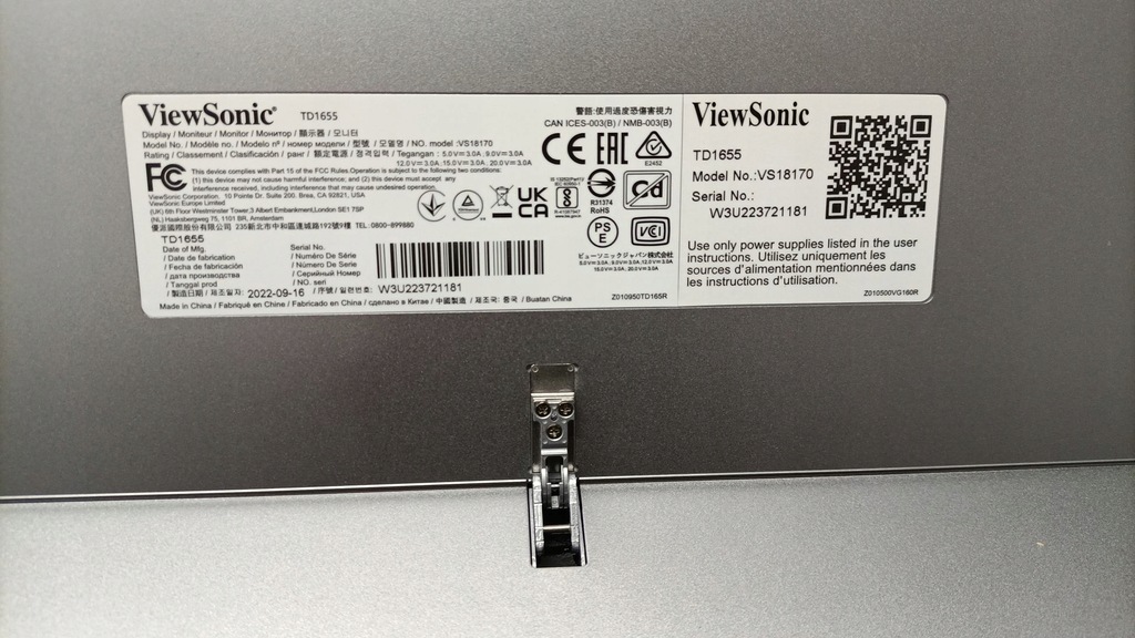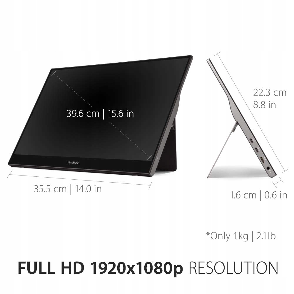 Zawartość pudełka: monitor ViewSonic TD1655, kabel HDMI, USB, USB-C
