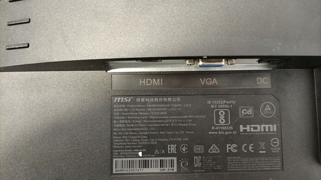 - CE, Energy star, EPEAT Silver, FCC-B, ISO 9241-307, PSB, RoHS, SASO, SEMKO, WEEE