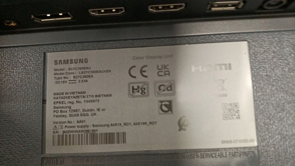Zacznij od razu: Oprócz monitora Full HD LS27C390EAUXEN w zestawie znajduje się kabel zasilający o długości 1,5 m i kabel HDMI.