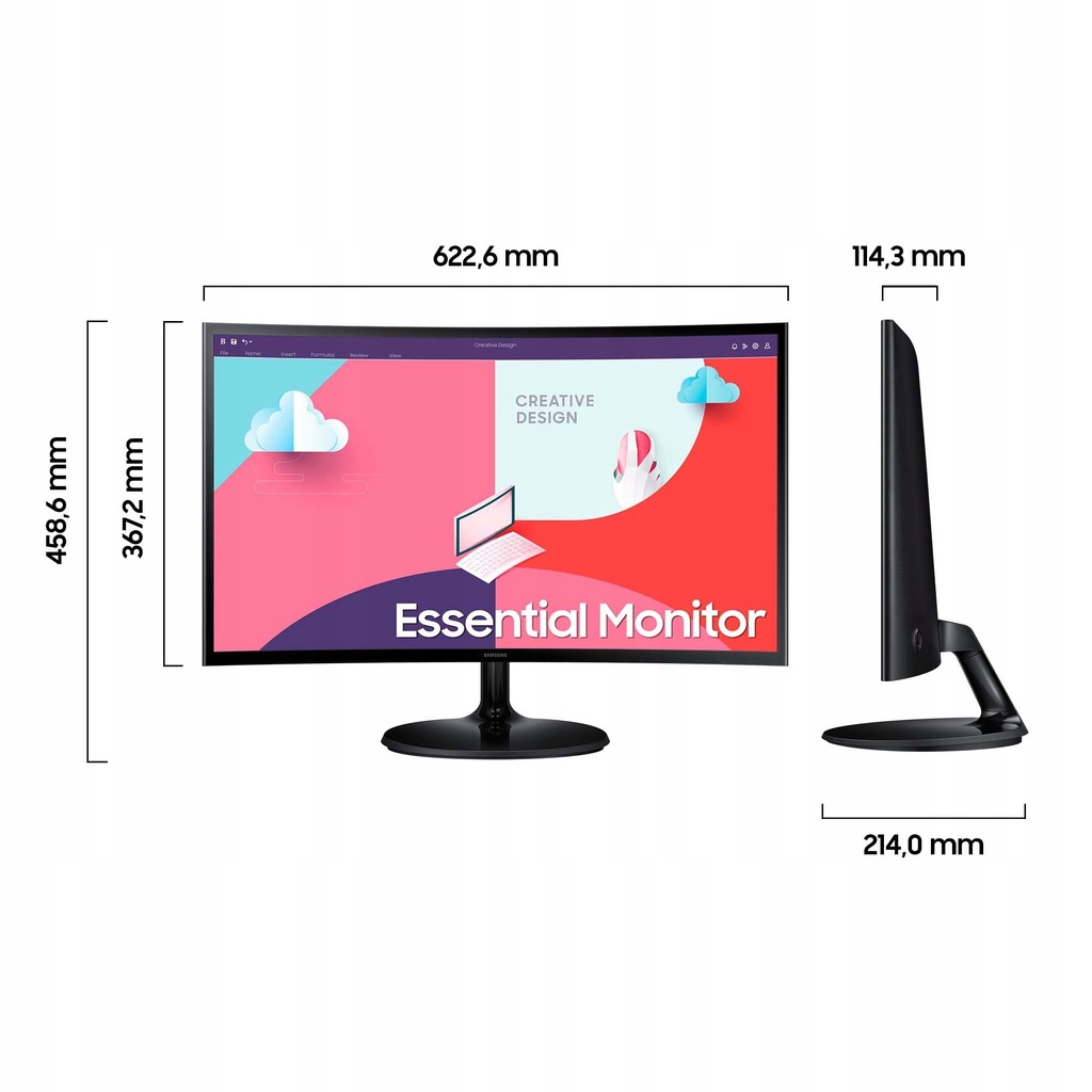 Wyraźny obraz: Zakrzywiony panel VA o rozdzielczości 1920 x 1080 pikseli, wartości jasności 250 cd/m2 i współczynniku kontrastu 3000:1 zapewnia żywe obrazy o bogatych kolorach