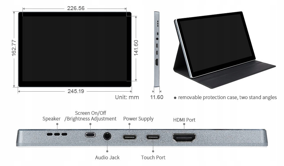10,5-calowy ekran dotykowy AMOLED o rozdzielczości 2560×1600, który łączy w sobie nowoczesny design z zaawansowaną technologią. Urządzenie, kompatybilne z platformami takimi jak Raspberry Pi i Jetson Nano, doskonale sprawdzi się również jako monitor komputerowy, oferując wyjątkowe doznania wizualne i intuicyjną obsługę dzięki funkcji multi-touch.