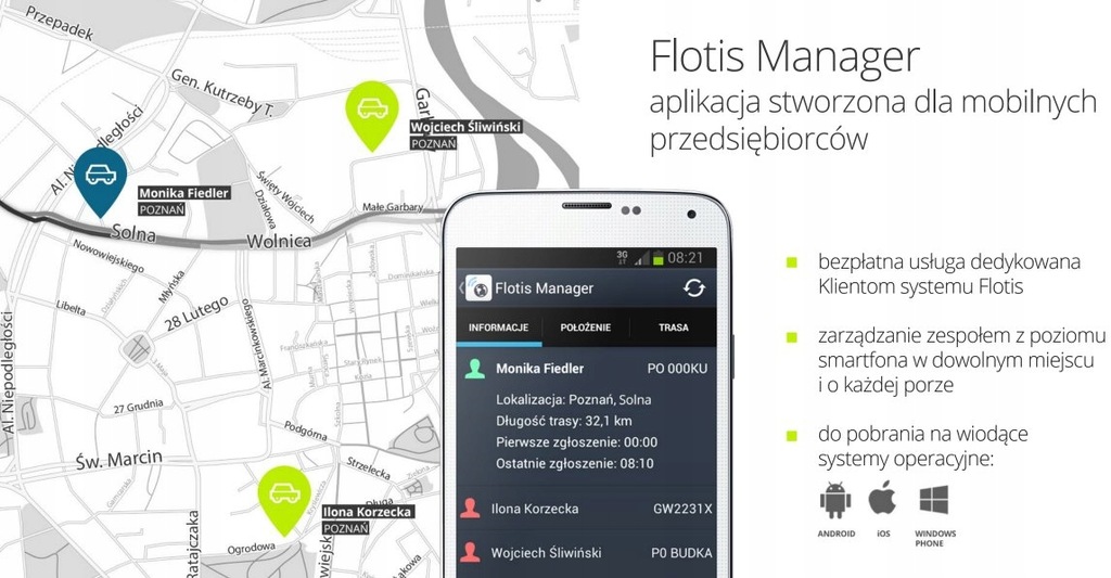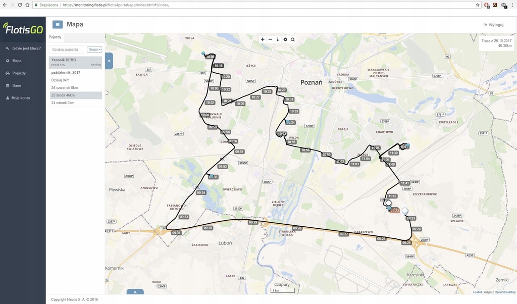 - Pozwala lokalizować pozycję pojazdów online na mapie.