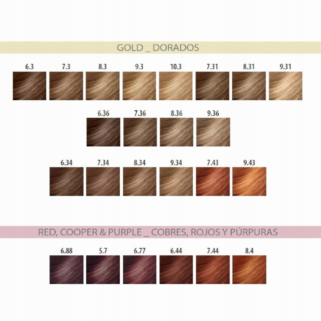 Technologia: AQUAGEL – nowoczesna technologia, która wykorzystuje wodę oraz naturalne humektanty do delikatnego i skutecznego wprowadzania pigmentu do wnętrza włosa. Pierwszy system, który przechwytuje, zatrzymuje i kontroluje stopniowe uwalnianie cząsteczek pigmentu w celu poprawy chrominancji i uniknięcia ryzyka zmatowienia włosów, zbytniego nasycenia kolorem lub nadmiernego rozjaśnienia.