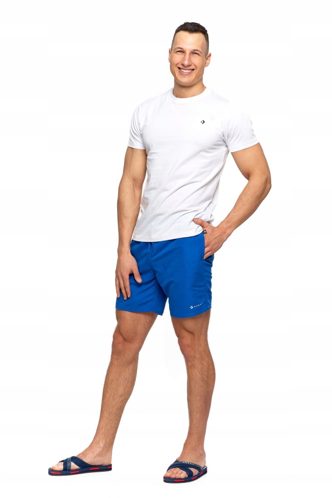 Szorty męskie uszyte z gładkiego, lekkiego materiału, idealne na wiosenno-letnie dni. Materiał ma właściwości szybkoschnące. Nada się zarówno do tworzenia casualowych stylizacji, jak i po prostu na plażę. W pasie mają wygodą elastyczną gumę. Ponadto mają praktyczne wiązanie na sznurki, dzięki czemu świetnie dopasujesz je do swojej sylwetki.W środku, od wewętrznej strony szorty mają wszytą cieńką, siateczkową majtkową wstawkę. Po obu stronach kieszenie, dzięki czemu możesz przechowywać w nich klucze podczas letnich aktywności.