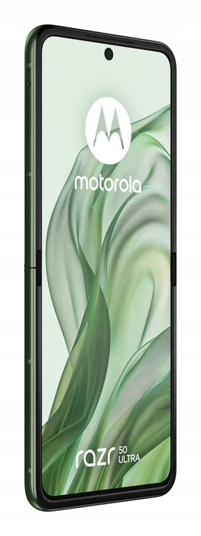 Motorola razr 50 Ultra. Długość przekątnej ekranu: 17,5 cm (6.9"), Rozdzielczość: 2640 x 1080 px. Typ procesora: Qualcomm Snapdragon, Model procesora: 8s Gen 3. Pojemność pamięci RAM: 12 GB, Typ pamięci RAM: LPDDR5X, Pojemność pamięci wewnętrznej: 512 GB. Rozdzielczość głównego aparatu – tył: 50 MP, Typ aparatu tylnego: Podwójny obiektyw. Obsługa kart SIM: Dual SIM. Zainstalowany system operacyjny: Android 14. Pojemność baterii: 4000 mAh. Kolor produktu: Zielony. Waga produktu: 189 g