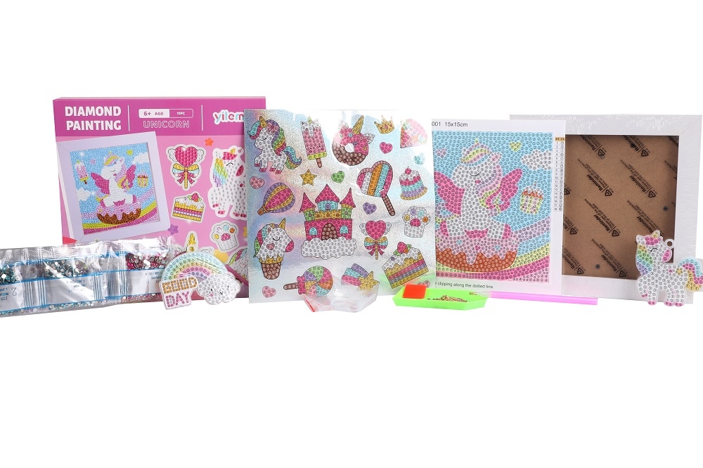 MOZAIKI DIAMETOWE BRELOK, NAKLEJKI, CIASTECZKOWY KĄCIK JEDNOROŻCA