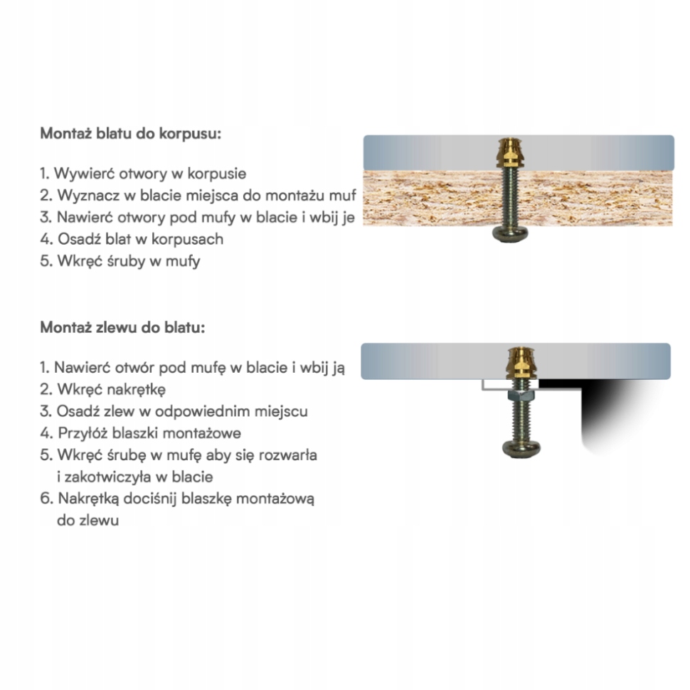 - montaż zlewu podwieszanego na cienkich blatach, takich jak kompaktowe