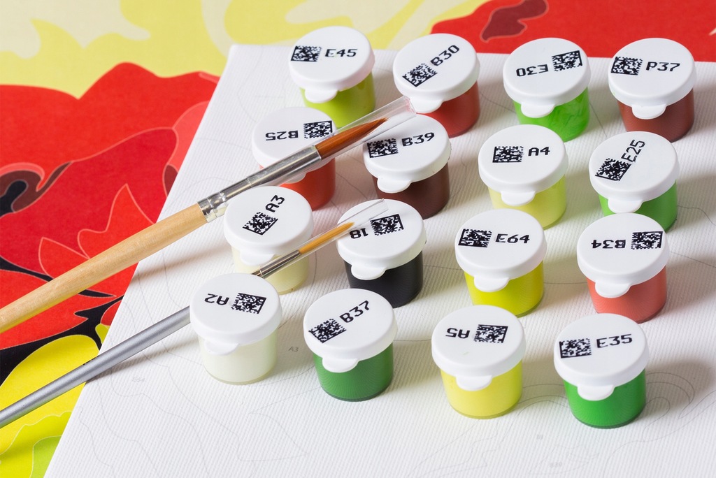 - wysokiej jakości farby akrylowe w pojedynczych ponumerowanych pojemniczkach