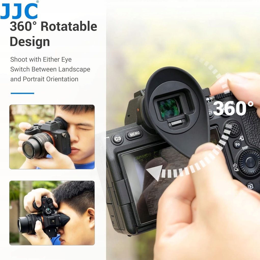 Zatrzymuje rozproszone wiato zapewniajc lepsz optyk wizjera. Mikka guma TPU zapewnia komfort oczu zwaszcza uytkownikom okularów. Ergonomiczny owalny ksztat zosta zaprojektowany tak aby lepiej pasowa do Twoich oczu. Obraca si o 360 stopni dla widoku poziomego lub pionowego. Zastpuje muszl oczn Sony FDAEP19. Muszla oczna przeznaczona jest do aparatów Sony Alpha A7 IV A7S III i A1.
