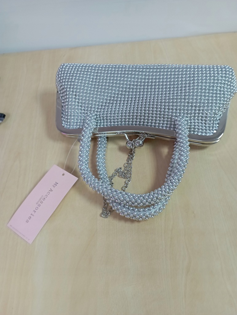 My Accessories mini srebrna torebka do ręki cyrkonie