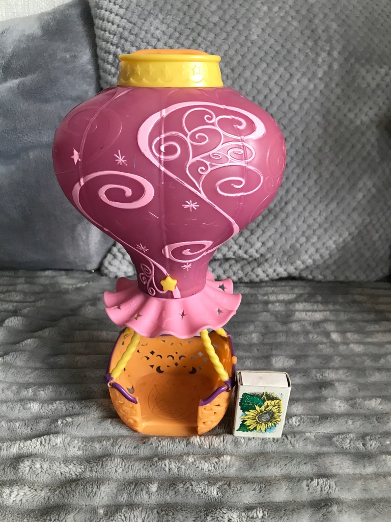 Twilight Sparkle uwielbia oglądać gwiazdy z bliska! Balon lekko świeci się, gra śliczną melodyjkę, a nawet zmienia kolor w trybie nocnym - tak by małe dziewczynki mogły przy nim zasypiać. Koszyk może pomieścić dwa kucyki.