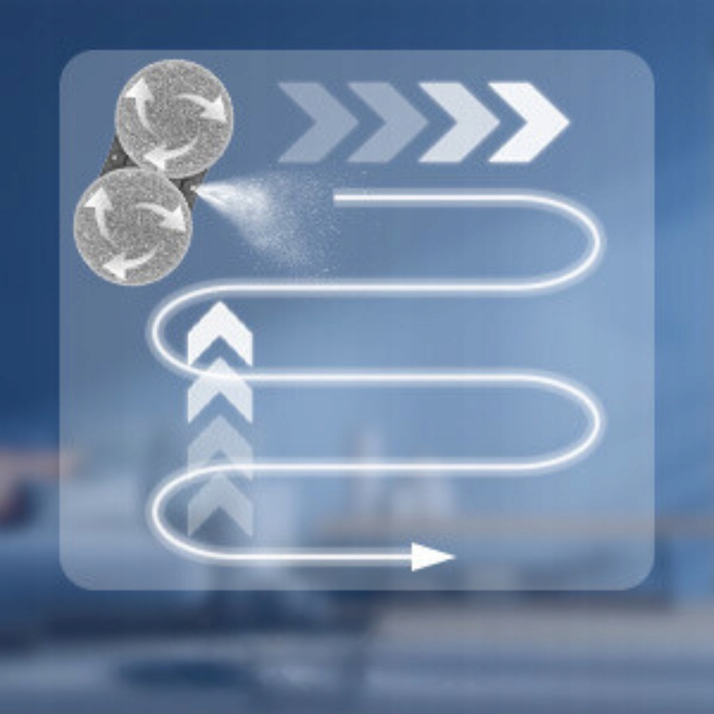 - Dwustronny automatyczny proces spryskiwania: robot wyposażony w ulepszone, dwustronne wyloty wody, które zapewniają kompleksowe pokrycie obszaru czyszczenia. Lewy wylot rozpyla wodę, gdy robot porusza się na lewą stronę Prawy wylot rozpyla wodę, gdy przepływa od dołu do góry. Prawy wylot rozpyla wodę, gdy porusza się w prawo.