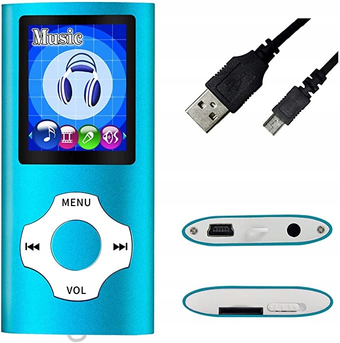 Dodatkowe informacje:Skopiuj muzykę ze smartfona lub komputera za pomocą karty pamięci do odtwarzacza Mymahdi i ciesz się muzyką. Odtwarzany format multimediów MP3/MP4, kolor niebieski, typ pamięci karta, SD. pojemność pamięci 64 GB. Wbudowany akumulator: po pełnym naładowaniu wystarcza na około 40 godzin. Zawiera kabel USB i słuchawki.