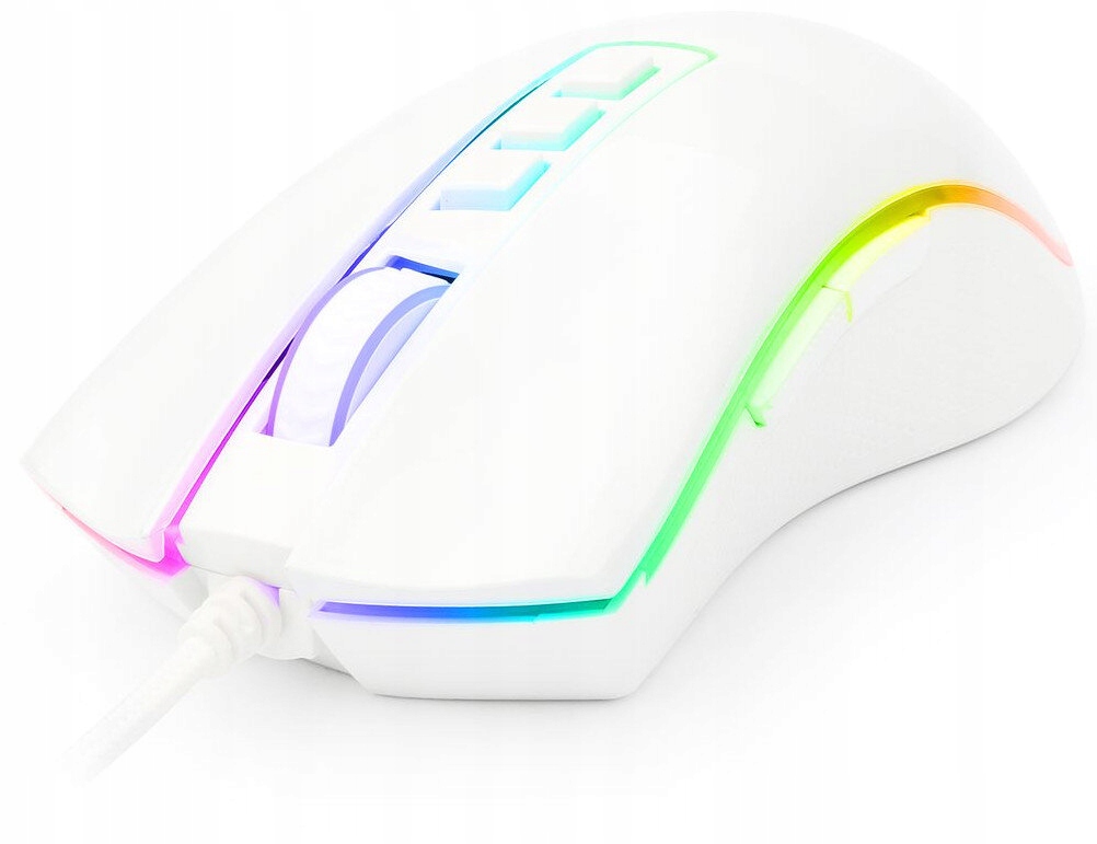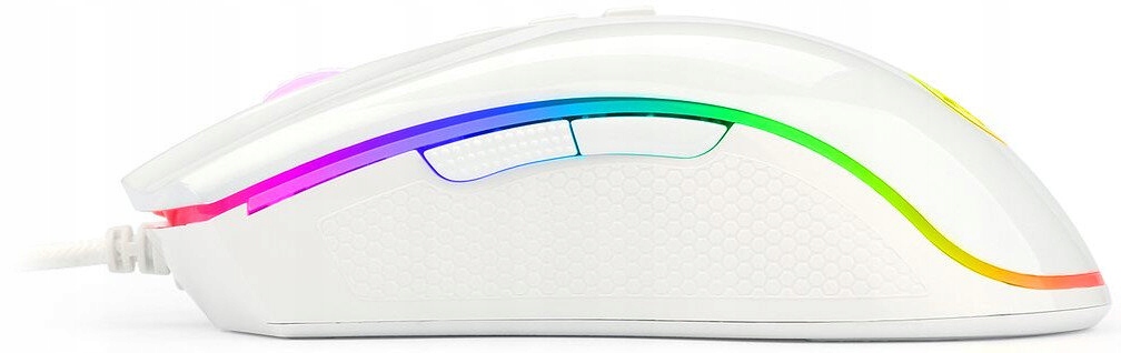 Myszka Redragon M711W COBRA łączy w sobie wydajność i styl, dzięki czemu gra staje się jeszcze bardziej komfortowa i przyjemna. Biała kolorystyka, czuły sensor i podświetlenie RGB to tylko niektóre z jej atutów. Wyjątkowość myszki M711W COBRA polega na jej ergonomicznym designie. Niewielkie wymiary pozwalają na perfekcyjne dopasowanie do dłoni, co zapewnia komfort podczas wielogodzinnej rozgrywki. Myszka M711W COBRA posiada w sumie 7 programowalnych przycisków, które znacznie ułatwiają rozgrywkę. Umożliwiają one graczom dostosowanie urządzenia do indywidualnych potrzeb, podnosząc komfort oraz wydajność rozgrywki. Model M711-2 Cobra pozwala na ustawienie DPI w zakresie od 100 do aż 10 000, co pozwala na dostosowanie jej działania do indywidualnych potrzeb każdego gracza, a rozgrywka staje się płynna i dokładna, niezależnie od przebiegu gry.