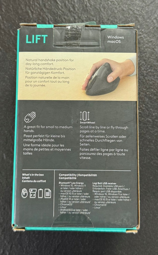 Organiczna sylwetka myszy Lift pasuje jak ulał do małych i średnich dłoni została specjalnie zaprojektowana i wyrzeźbiona przez zespół ekspertów firmy Logitech w dziedzinie ergonomii i wzornictwa.