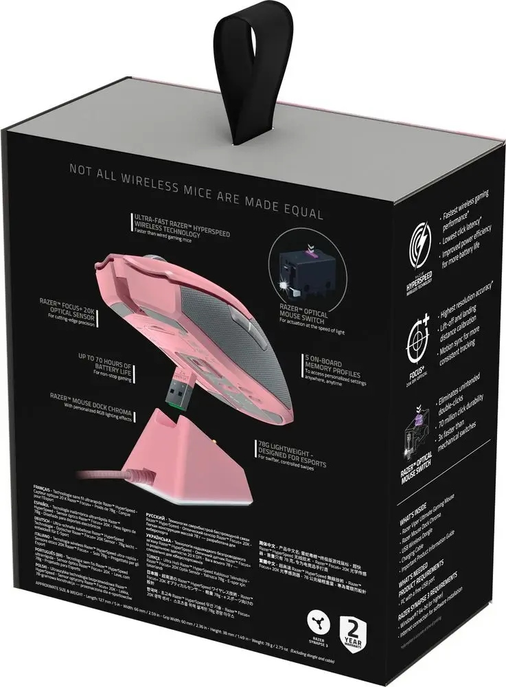 - zastosowane technologie: sensor: Razer Focus+ | technologia bezprzewodowej łączności: Razer HyperSpeed