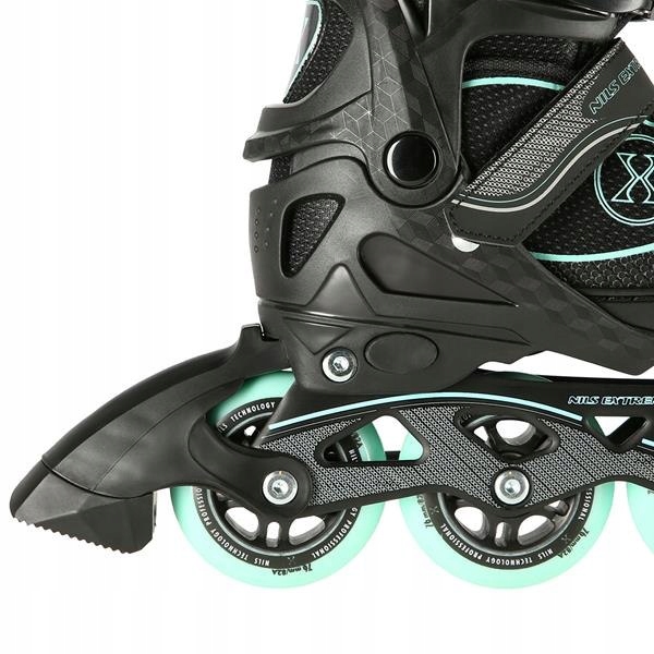✨ NA11008 CZARNO-MIĘTOWY ROZM. M (35-38) ŁYŻWOROLKI NILS EXTREME ✨