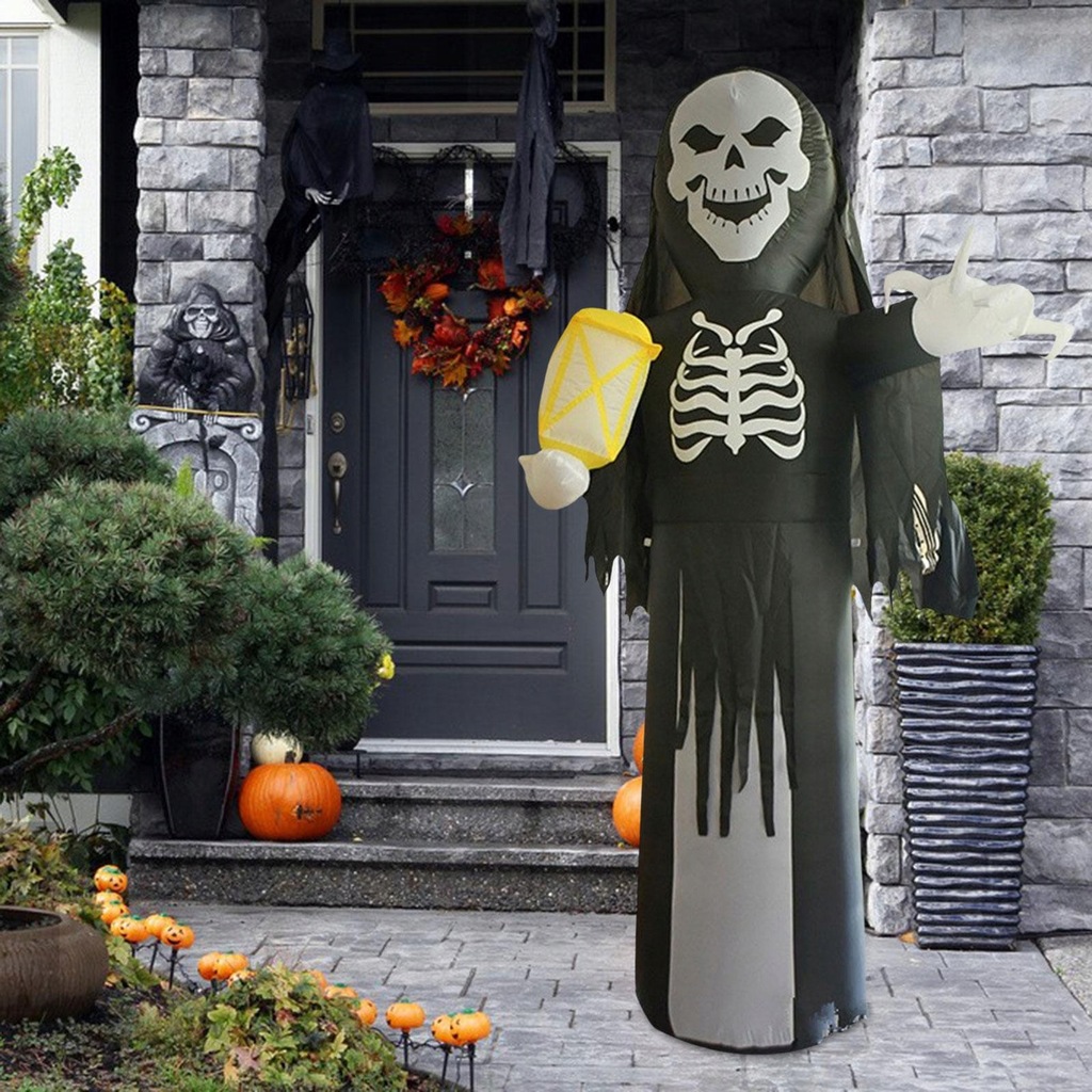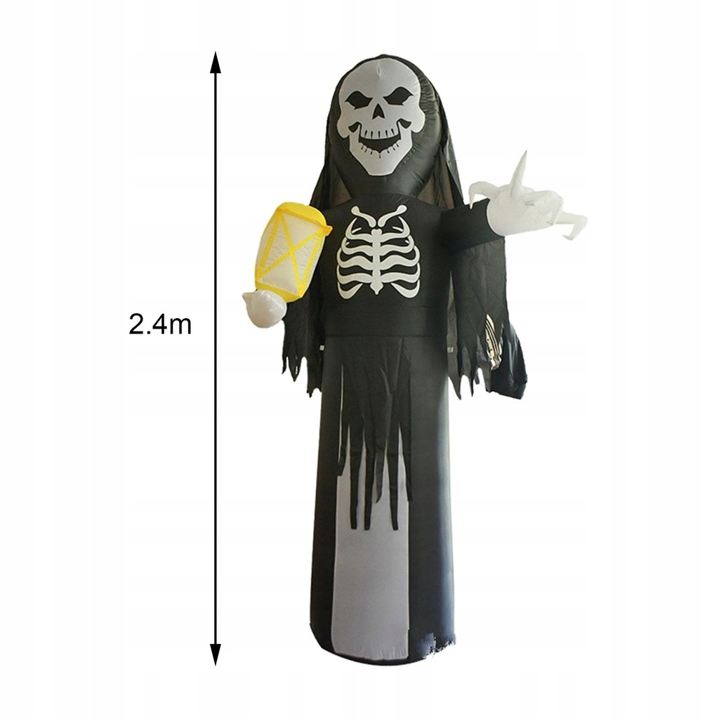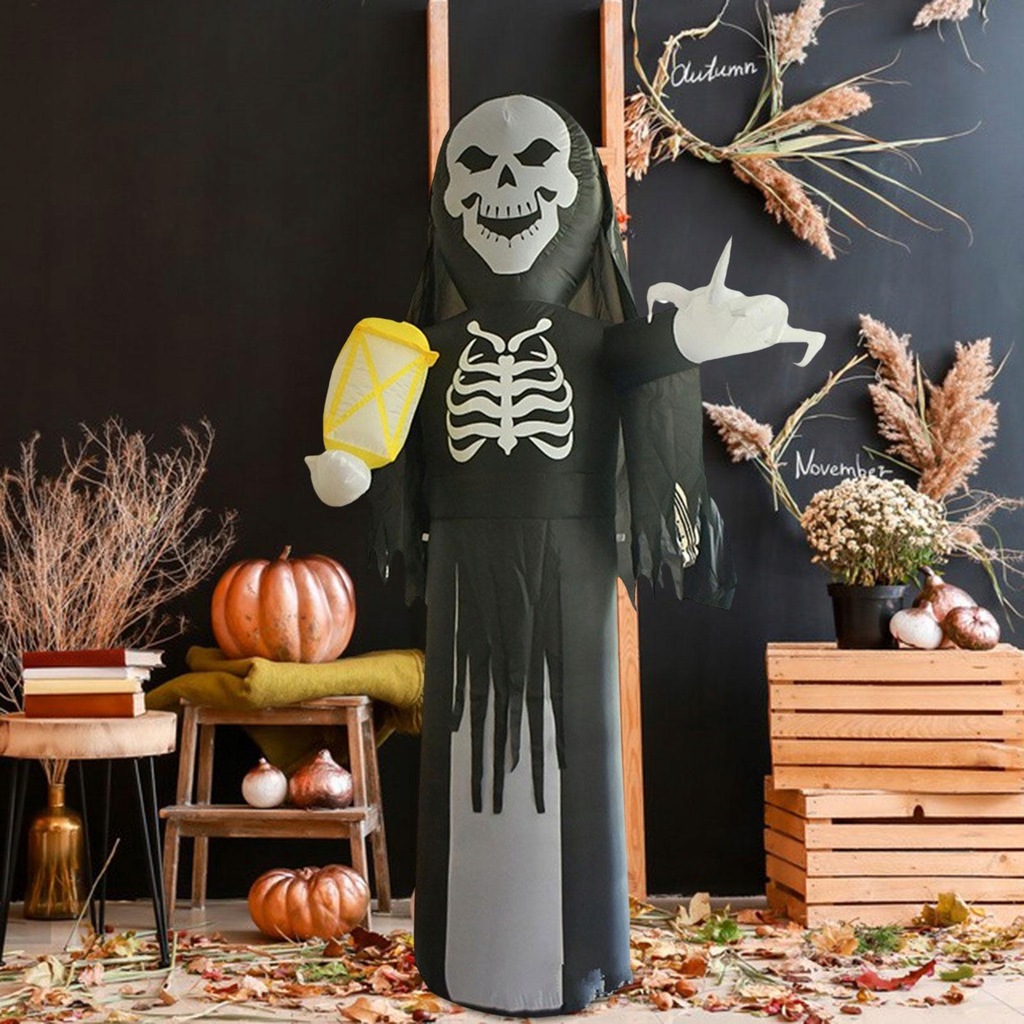 [Przerażający wygląd] Szkielet nadmuchiwany rekwizyt do dekoracji Halloween został zaprojektowany z wyglądem ponurego żniwiarza z latarnią, może świecić.