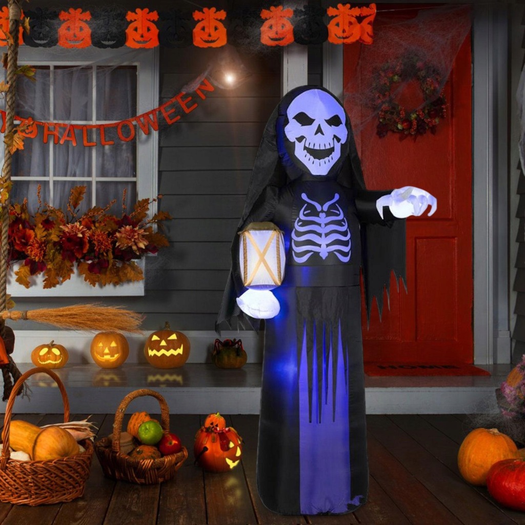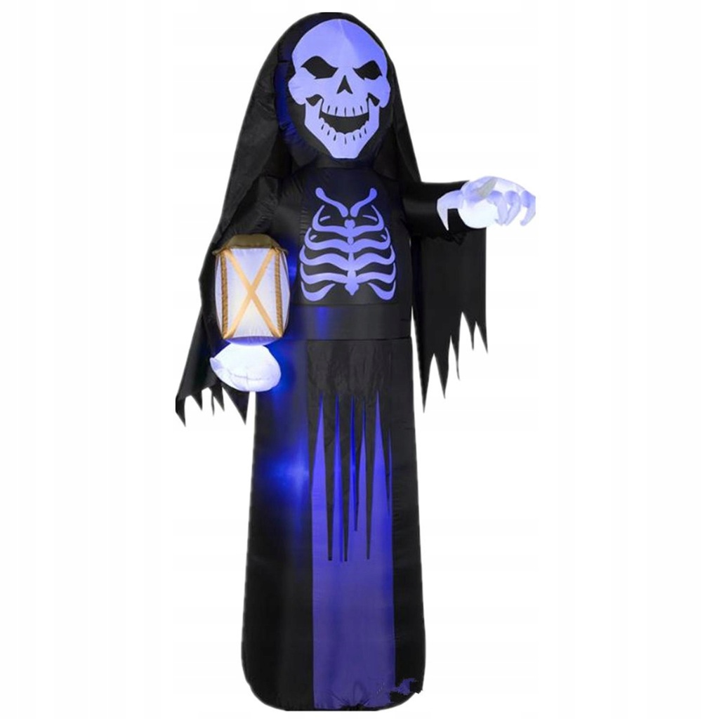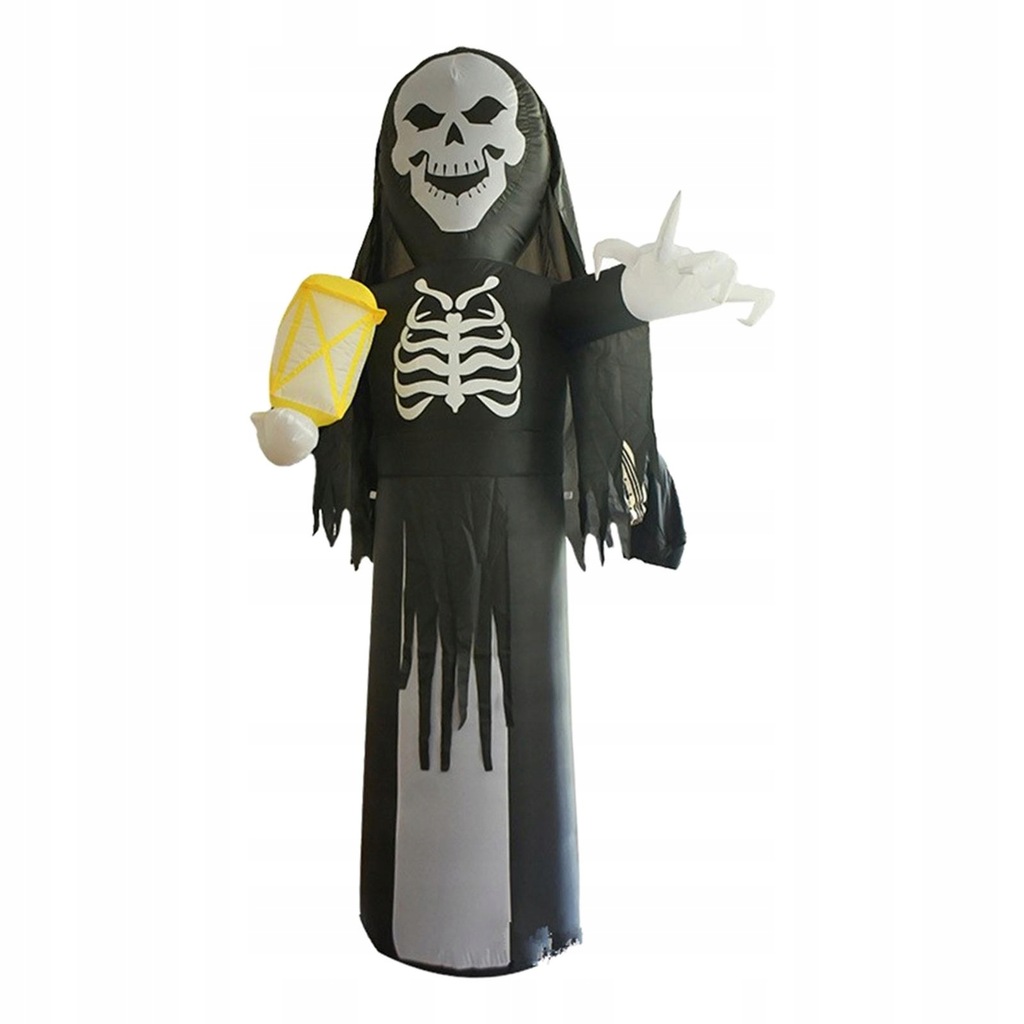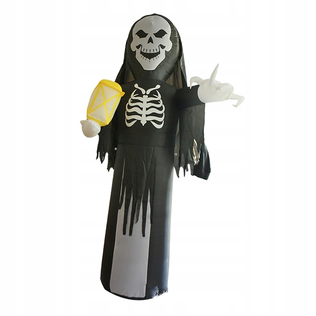 [Przerażający wygląd] Szkielet nadmuchiwany rekwizyt do dekoracji Halloween został zaprojektowany z wyglądem ponurego żniwiarza z latarnią, może świecić.