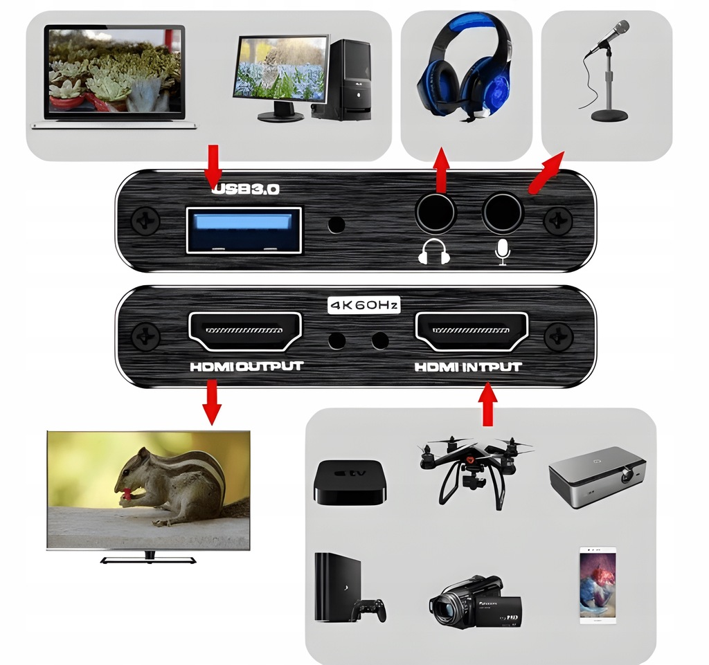 NAGRYWARKA OBRAZU GRABBER HDMI 4K VIDEO NA USB 3.0 DO PC LAPTOPA KARTA