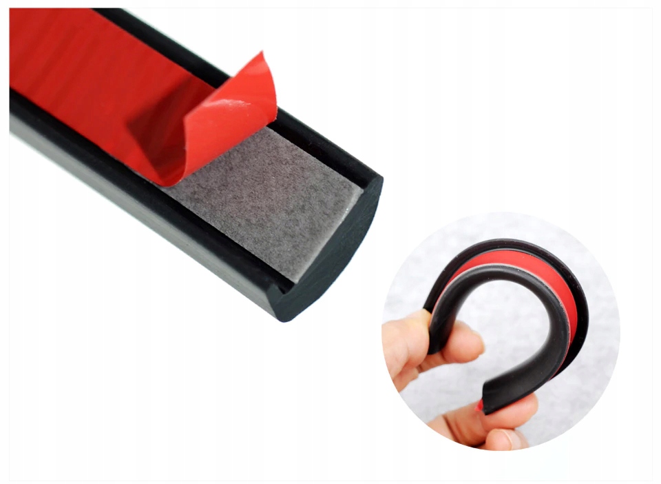 Zestaw do samodzielnego montażu składa się z gumowej listwy, która zaopatrzona jest w mocną dwustronnej taśmę.