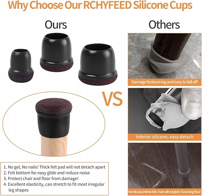 Nakładki na nogi krzeseł 16 szt. 25-30mm silikon + filc ochrona (17504859594)