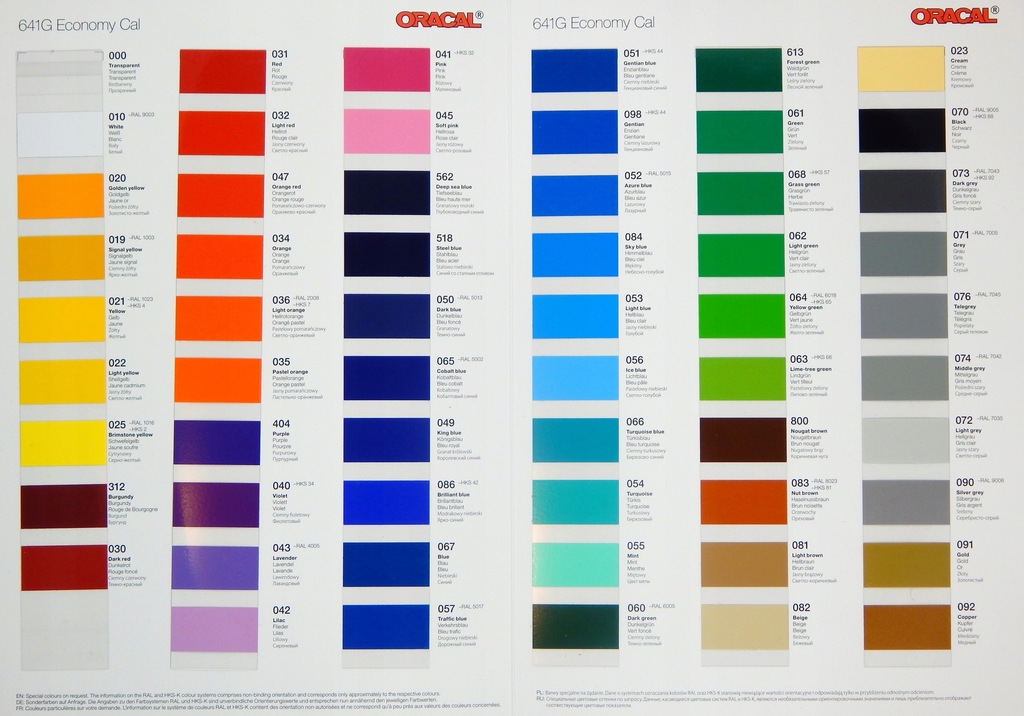- naklejki standardowe wykonywane z foli ekonomicznej z firmy ORACAL typu 641