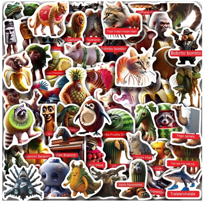 zestaw 60 szt. naklejki wlepy wodoodporne Italian brainrot TIK TOK VIRAL