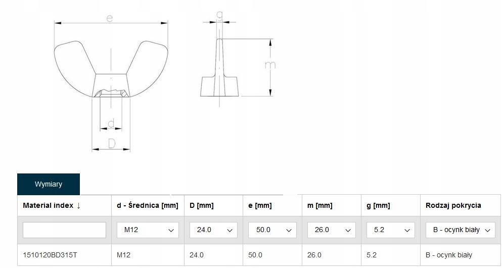 Nakrętka M12 motylkowa ocynkowana