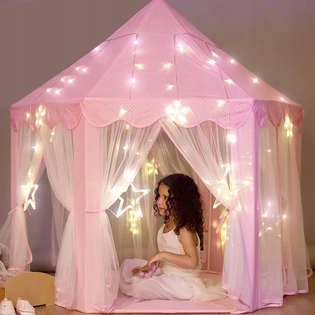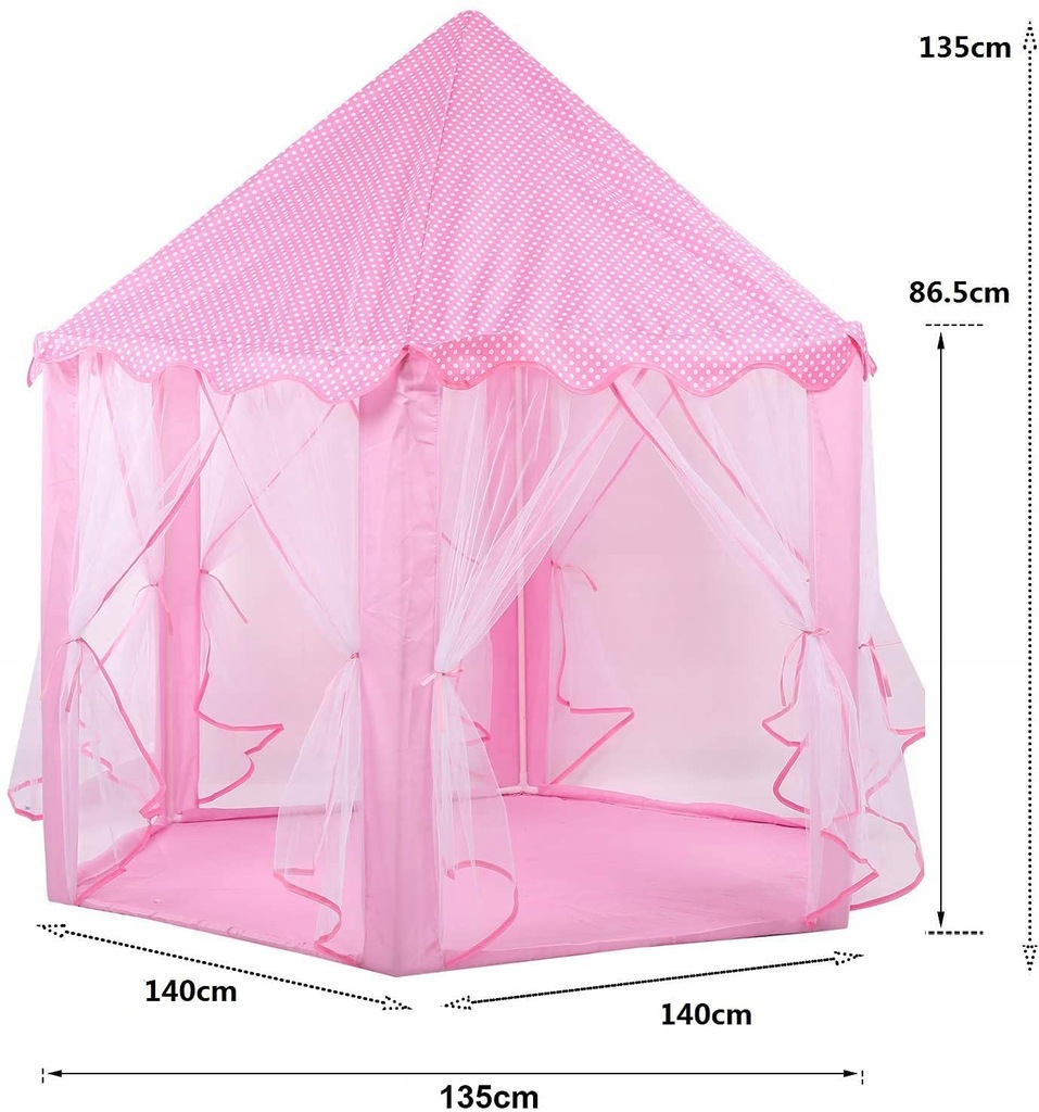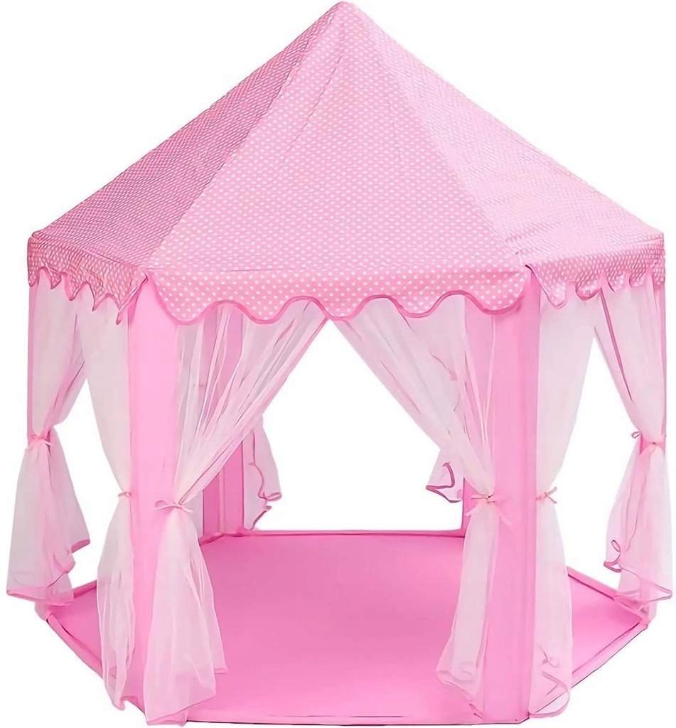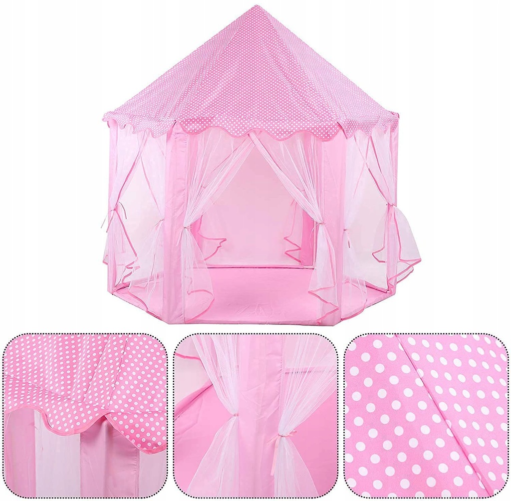 Piękny namiot, w postaci rozkładanego sześciokątnego pałacu, który zadowoli każdą małą księżniczkę.