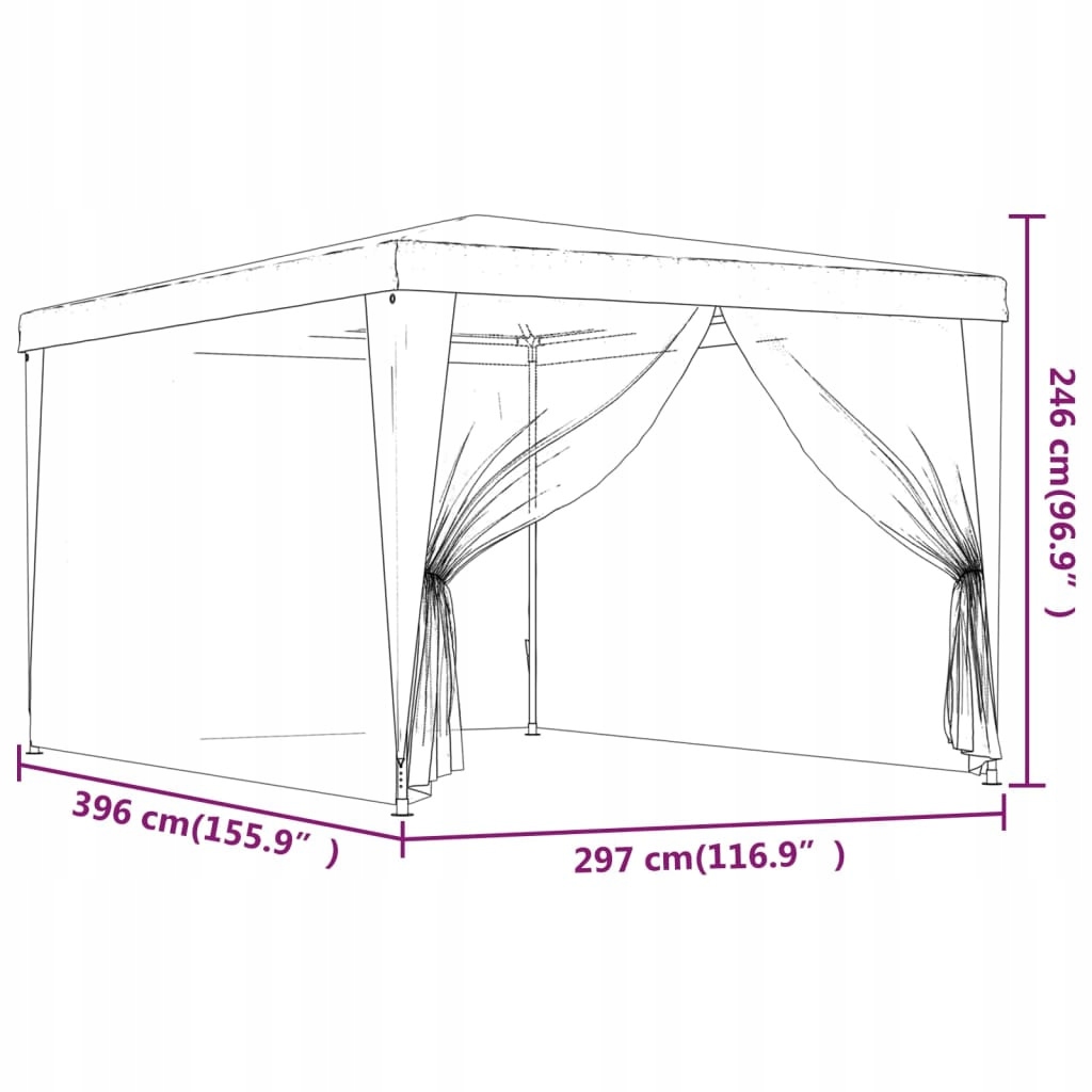 Niesamowity namiot do imprez z solidną konstrukcją żelazną, trwałym dachem wodoodpornym i czterema siatkowymi ścianami pełni rolę doskonałego schronienia przed słońcem.