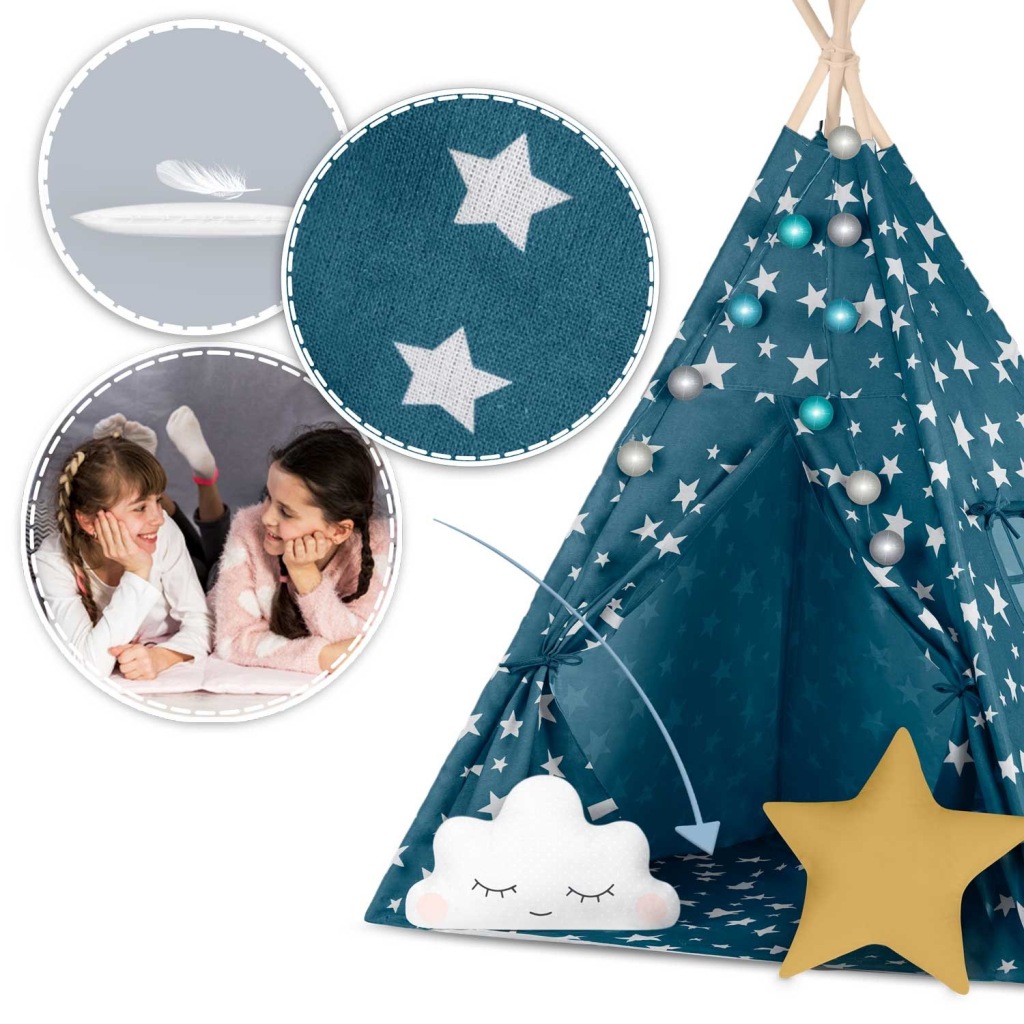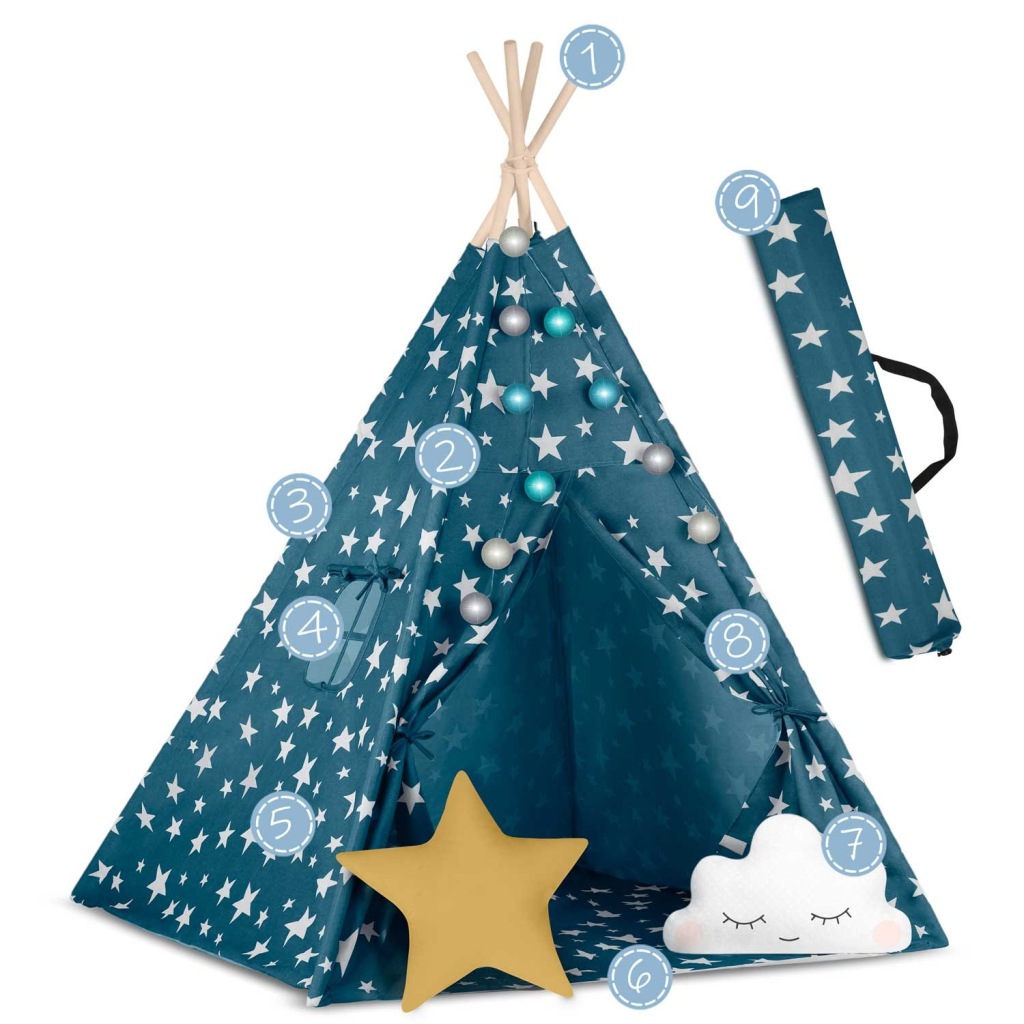 Namiot tipi dla dzieci ze światełkami Nukido - niebieski, Nukido, 740121.59