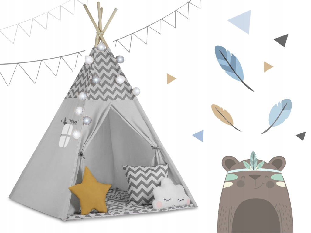 Namiot tipi dla dzieci ze światełkami Nukido - szary, Nukido, 740021.590389