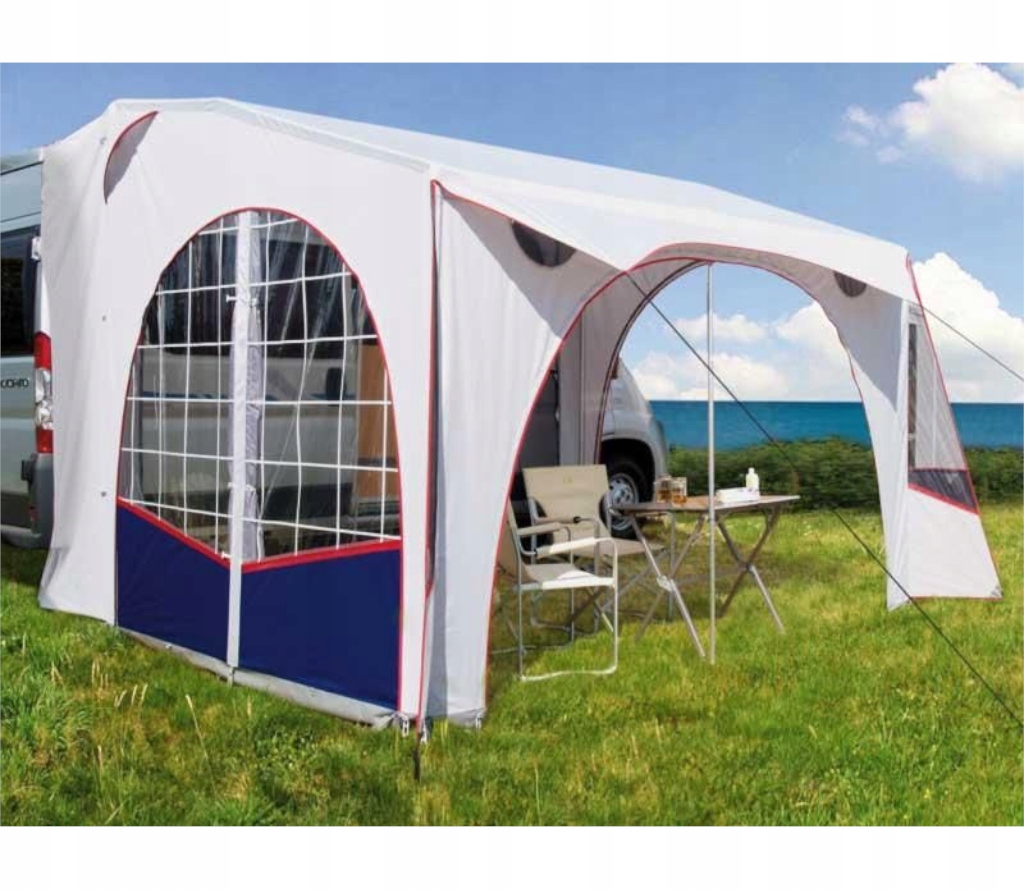 Przednie wejście można również zdjąć lub wykorzystać jako dodatkowe zadaszenie za pomocą drążka łączącego