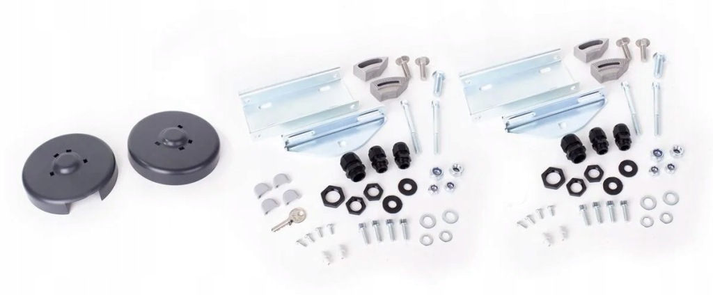 - Elementy montażowe do słupków i skrzydeł bramy wraz z trzpieniami mocującymi siłowniki