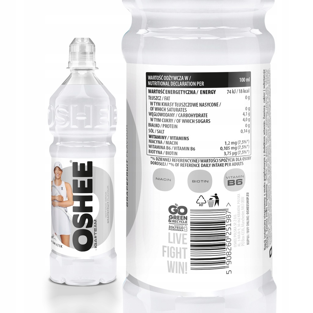 Oshee Isotonic Drink w smaku grejpfrutowym to napój izotoniczny o wyjątkowych właściwościach. Zawiera biotynę, niacynę i witaminę B6, które są korzystne dla organizmu w wielu aspektach: