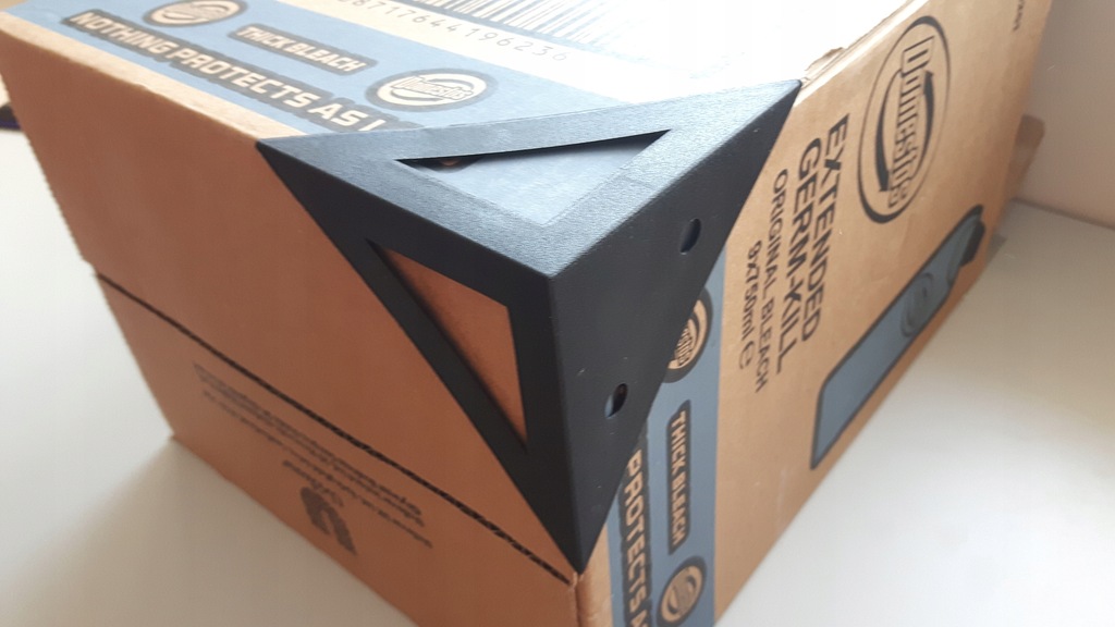 Narożnik ochronny wykorzystywany do zabezpieczania krawędzi narożników paczek, kartonów, do pakowania mebli – płyt meblowych.