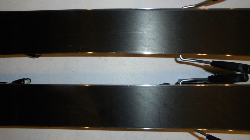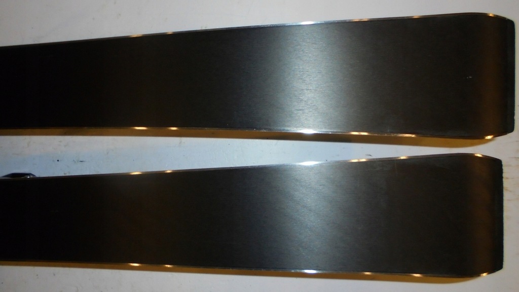 Spód nart: Ślizgi oraz krawędzie grube i równe na całej długości, w stanie bardzo dobrym.