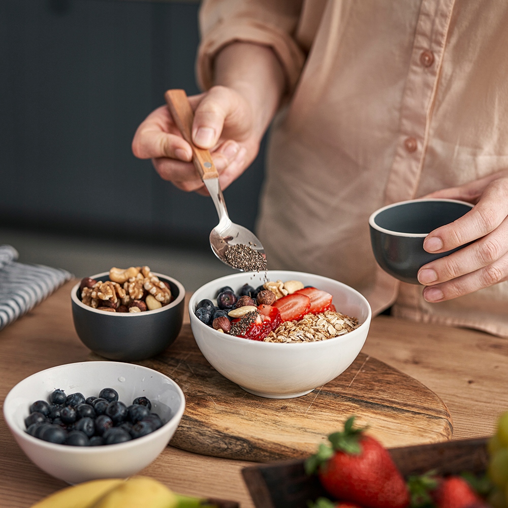 Nasiona chia to małe, ale potężne ziarna, bogate w błonnik, który wspomaga zdrowe trawienie, przyczynia się do utrzymania stabilnego poziomu cukru we krwi oraz redukują uczucie głodu. To doskonała pomoc w utrzymaniu zdrowej wagi i dobrej kondycji jelit.