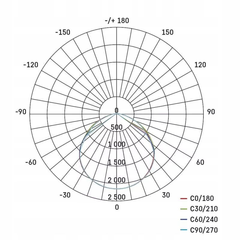 Dzięki zastosowanej technologii LED oraz kształtowi klosza, reflektor oświetla szeroki kąt 120°. Wiązka oprawy jest mocna, a jednocześnie zapewnia odpowiednio szeroki kąt świecenia.