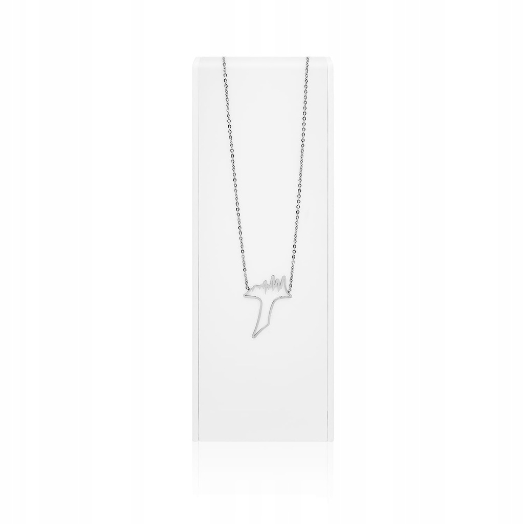 Niepowtarzalny naszyjnik z zawieszką w kształcie krzyża Tau. W poziomą belkę krzyża wkomponowano motyw linii życia. Wszystkie elementy naszyjnika wykonano ze stali szlachetnej.
