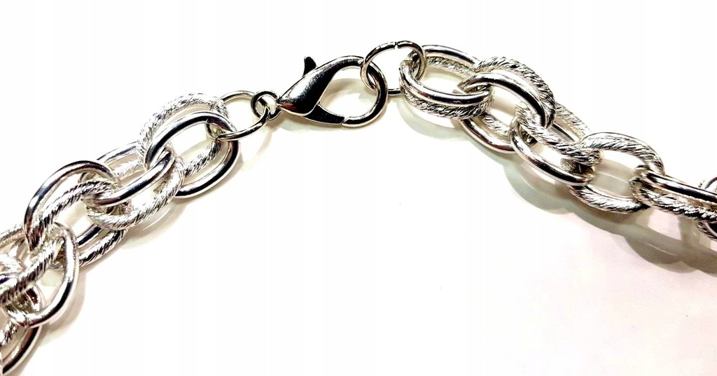 Na tej aukcji mamy długi metalowy naszyjnik łańcuch w SREBRNYM kolorze