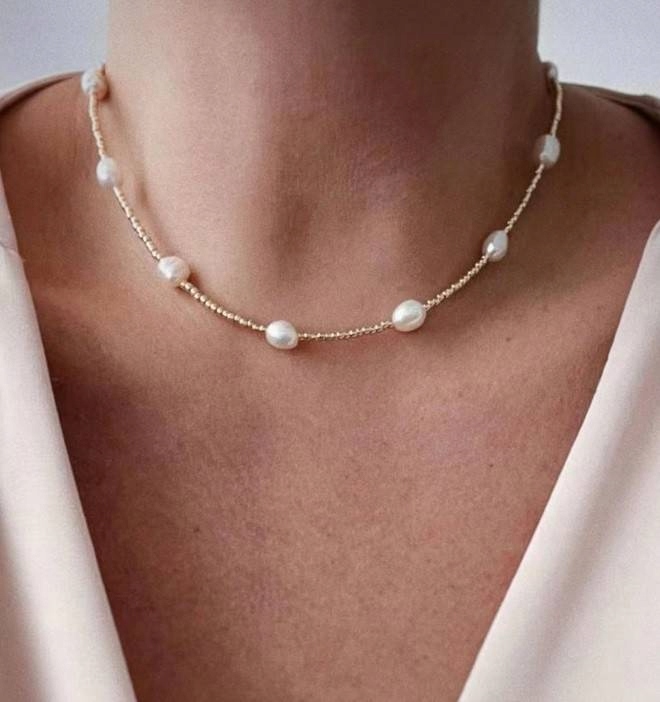 Naszyjnik Perełki Stal Szlachetna Pozłacana 14K Złotem Nst2108
