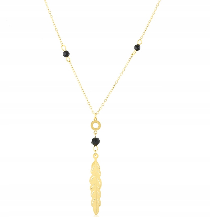 Naszyjnik złoty celebrytka krawatka z piórkiem