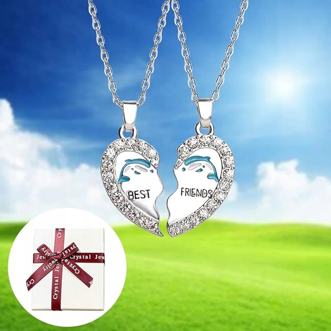 NASZYJNIKI PRZYJAŹNI POŁÓWKI SERCA BEST FRIEND DELFIN 2 SZTUKI
