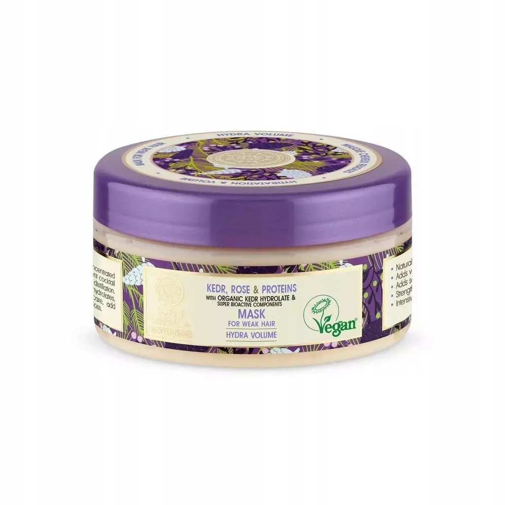 Wegańska, profesjonalna maska do włosów z organicznym hydrolatem z sosny syberyjskiej intensywnie nawadnia i odżywia włosy osłabione, dostarczając im energii i siły. Dodaje elastyczności, objętości i wspaniałego blasku.