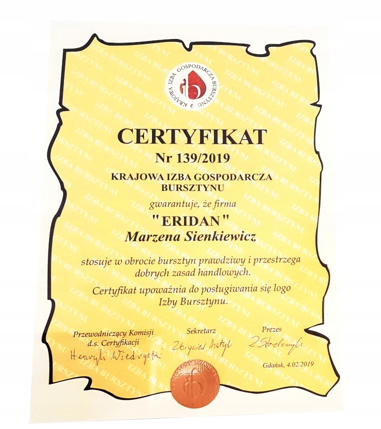 Zgodnie z posiadanym certyfikatem stosujemy w obrocie jedynie bursztyn prawdziwy.